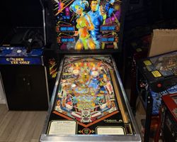 The machine's design and software were primarily handled by John Buras, who crafted the gameplay experience, while the distinct visual identity came from the brush of Gordon Morison, the artist responsible for the vibrant playfield and backglass artwork. Initially, during its development phase, this machine, designated Model #437, carried the working title "Par Four," a detail found in Gottlieb's engineering records, highlighting an internal shift in thematic direction before its final production name was settled. Its release marked Gottlieb's continued venture into the solid-state era, following a long history of electro-mechanical designs, demonstrating their adaptation to emerging technologies in pinball.