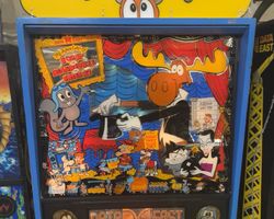 The playfield is a colorful expanse filled with familiar elements from the show. It includes significant shots like the smooth ramp traversing Moose Mountain and the WABAC machine, which beckons players into challenging sequences. The playfield's strategic layout features two ramps, three pop bumpers, seven standup targets, and five drop targets—each designed to keep players on their toes.